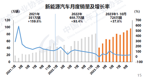 1-10月,新能源汽車產(chǎn)銷累計(jì)完成735.2萬(wàn)輛和728萬(wàn)輛,同比分別增長(zhǎng)33.9%和37.8%,市場(chǎng)占有率達(dá)到30.4%。