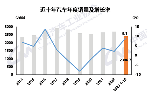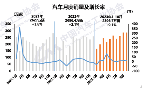 中國(guó)汽車工業(yè)協(xié)會(huì)最新數(shù)據(jù)顯示,繼重迎“金九”旺季之后,2023年10月車市熱度繼續(xù),汽車銷量與9月基本持平,環(huán)比微降,同比呈兩位數(shù)增長(zhǎng),“銀十”成色十足。