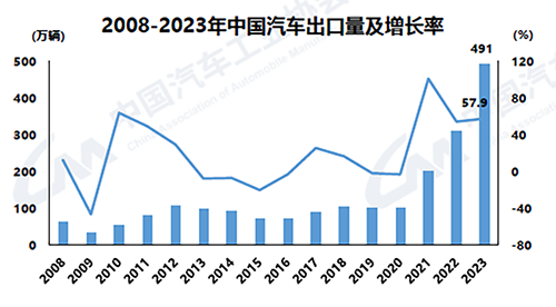 2023年,汽車出口再創新高,成為拉動汽車產銷量增長的重要力量。汽車出口491萬輛,同比增長57.9%,出口對汽車總銷量增長的貢獻率達到55.7%。分車型看,乘用車出口414萬輛,同比增長63.7%;商用車出口77萬輛,同比增長32.2%。