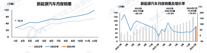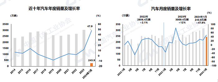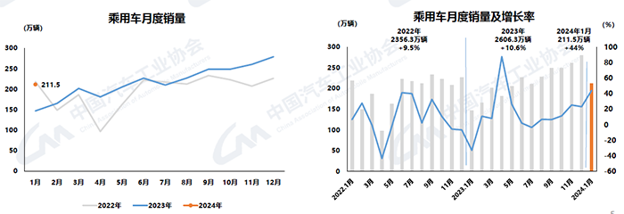 2024年1月汽車產銷環比下降,同比大幅增長