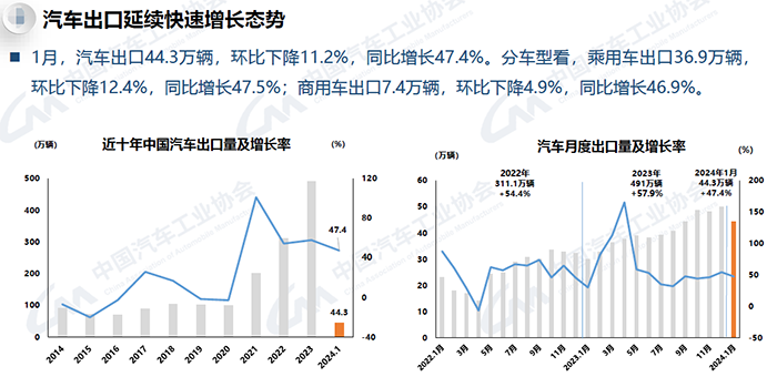 1月,汽車出口延續增長態勢。