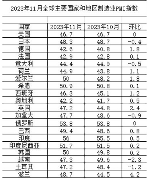 中國物流與采購聯合會近日公布的數據顯示,202311月份全球制造業PMI48%,較上月小幅上升0.2個百分點,連續14個月運行在50%以下,全球經濟弱勢下行趨勢沒有改變。