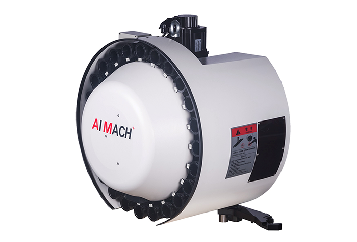 該產品通過模塊化可重構的鏈式刀庫結構設計方法,實現在保證刀庫容量增長的前提下,保證容刀排布的靈活性和空間利用率,刀庫的換刀效率提高。通過分析ATC的換刀過程和弧面凸輪分度機構的傳動特點,以運動仿真的方法,對弧面凸輪分度機構的傳動精度展開研究。開展了自動換刀裝置結構優化設計技術研究。采用基于“質量-輪廓-速度”智能柔性匹配的譜系化刀庫產品設計方法,保證了弧面凸輪運轉精度和使用壽命。實現換刀速度基于刀具重量識別的自適應調節。開發自動換刀裝置凸輪加工刀路仿真分析軟件,提高加工效率與精度。目前,BT40圓盤式刀庫廣泛應用于航空航天、船舶、精密模具、精密機械等尖端產品制造領域。