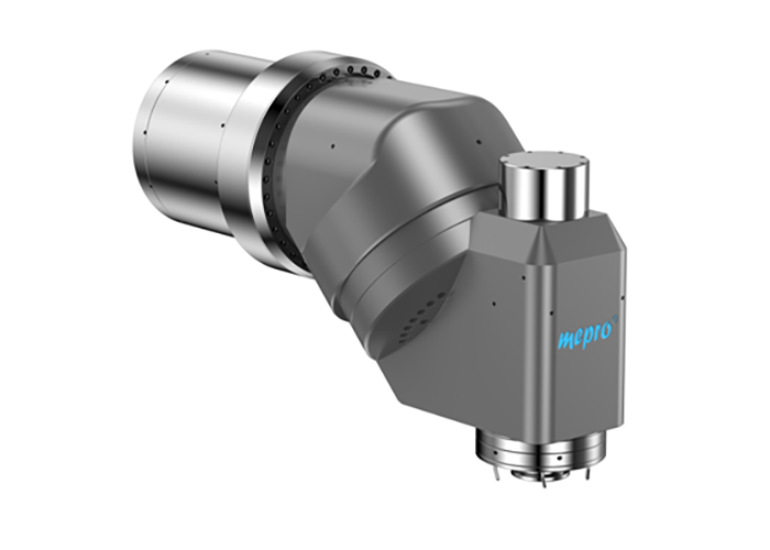 這是伊貝格自主研發的立臥轉換五軸聯動銑頭,45°萬能頭。該產品采用的是電機和齒輪混合動力,具有大扭矩、立臥轉換、干涉小、精度高等特點。主軸扭矩600Nm、主軸最高轉速4000r/min、A/C軸額定/最大扭矩為270/600Nm、A/C軸最大轉速30r/min、A/C軸定位精度8” VDI3441、A/C軸重復定位精度4” VDI3441、A/C軸抱緊扭矩4000(60bar)Nm。