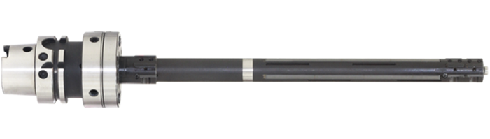 該刀具技術優勢:刀桿直徑可達Φ300,刀具長徑比可達16倍,刀具懸深長度可達4m,刀具內部具有獨特的內置阻尼減振系統,可有效抑制切削加工中的振動。并采用了快換式刀頭PSC 接口設計,解決了不同內腔形狀需要不同刀頭加工的問題,以及大直徑阻尼減振車刀更換困難的問題。刀具通過整體結構優化設計,并優化配置合金鋼與硬質合金等多種材料,既提高刀具剛性,又具備足夠的強度與韌性,達到重型深孔加工阻尼減振刀具懸伸16倍徑時能穩定切削的目標。通過快換式刀頭結構設計提高使用便攜性,通過串聯式內冷結構設計提高冷卻系統性能,保證刀尖的耐用度。