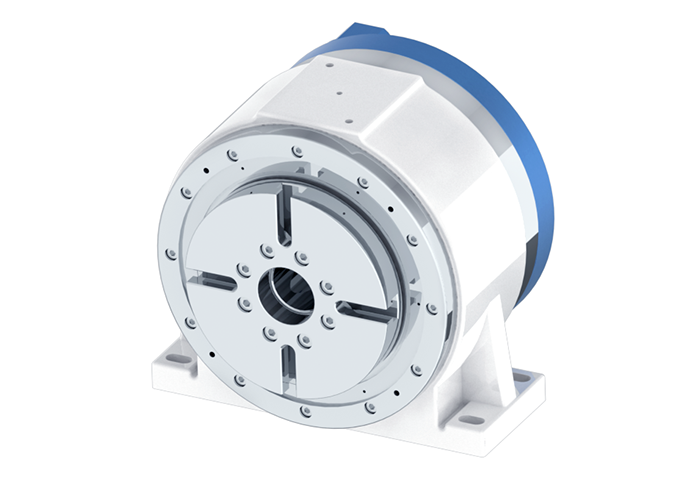 該轉臺作為分度定位的基準元件主要應用于加工中心,作為機床的第四軸,實現(xiàn)一次裝夾多面加工,大幅提高產(chǎn)品精度及加工效率;中空孔的結構設計方便匹配各種型號的夾具治具,適應不同零件的加工方式。采用大扭矩三相永磁同步力矩電機技術,進行電機結構和尺寸設計,并通過電機電磁動態(tài)仿真優(yōu)化齒槽轉矩、反電勢,實現(xiàn)電機轉矩優(yōu)化。采用Id=0矢量控制策略對電機進行調速控制,并通過電磁性能測試,優(yōu)化調節(jié)PID參數(shù),整體提升電機的運行性能。本產(chǎn)品采用昊志密封結構,解決了同類產(chǎn)品防水、防塵的頑疾,整機防護等級可達IP67,產(chǎn)品壽命及穩(wěn)定性顯著提升,具有很高定位精度,可大量替代國外直驅外驅轉臺產(chǎn)品,贏得較好的市場聲譽。