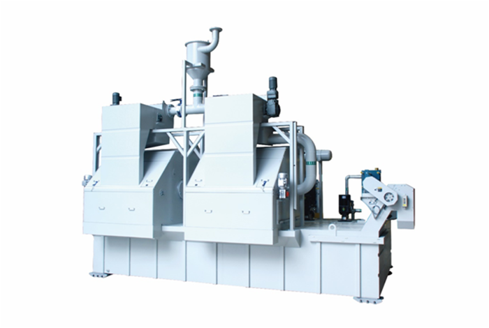 立式紙帶過濾裝置是加工中心的重要輔機裝備,是切削液循環(huán)利用的重要保障,廣泛應用于汽車、國防、高鐵、風電、手機以及高精密機械加工等領域。該產(chǎn)品根據(jù)現(xiàn)有加工中心布局特點,在有限的空間內采用柔性定制設計方案,將加工中心排出的大流量切削液,通過楔形網(wǎng)或滾筒將大顆粒切屑排出,實現(xiàn)一級粗過濾;過濾后的切削液由水泵輸送至馬蹄形網(wǎng)鏈鋪裝而成的凹形腔體上的濾紙,經(jīng)緩流腔體的來液減壓,濾紙表面沉積定量細屑后液面上升,液位報警器發(fā)訊自動走紙系統(tǒng),致使細屑通過濾紙排出,實現(xiàn)二級高精過濾。該機可有效實現(xiàn)切削液資源的循環(huán)再利用,助力機加工領域節(jié)能減排、資源節(jié)約和綠色制造。