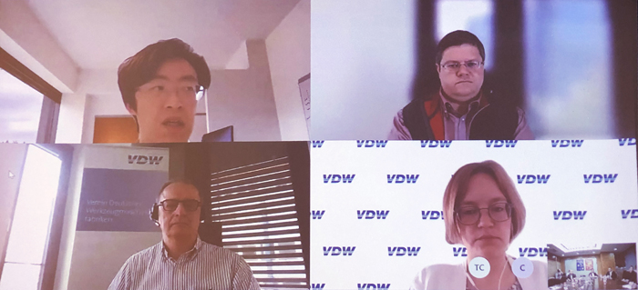 4月27日,中國機床工具工業協會(CMTBA)與德國機床制造商協會(VDW)召開線上會議,交流NC-Link與umati的最新進展情況,探討深度合作推廣事宜。中國機床協會常務副理事長兼秘書長毛予鋒、執行副理事長王黎明、副秘書長穆東輝等,德國機床制造商協會(VDW)會長Wilfried Schaefer博士、技術研究部總監/umati項目負責人Alexander Broos博士、中國事務專家Sonna Pelz博士以及VDW中國首席代表孫艾弘先生等參加會議。