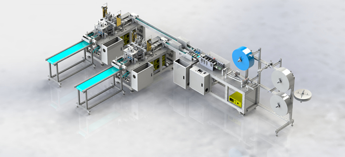 濟南一機推出的全自動口罩生產線,實現口罩生產從材料到成品的全自動化,口罩日產量達15萬只左右。此外,該生產線可配合兄弟公司蘇州德邁科電氣有限公司的口罩全自動包裝線使用,實現從原材料→成品→包裝的全程無人化運行。