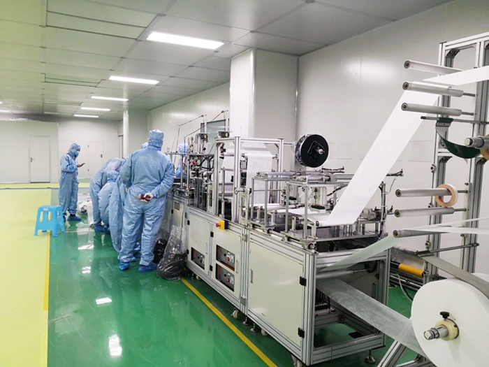 截至2月18日,已有一臺口罩機進入試生產,其他設備也已進入最后的安裝調試階段。