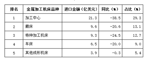 表4 2019年1-12月進口金額排前五位的金屬加工機床品種