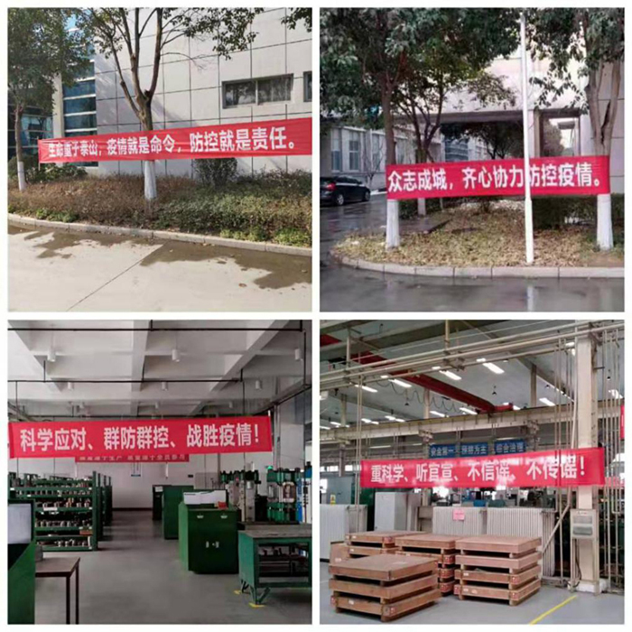 山東威達(dá)機(jī)械股份有限公司2月10日所有車間全部復(fù)工。在公司的統(tǒng)籌部署下,堅(jiān)持早準(zhǔn)備、定規(guī)范、強(qiáng)示范、勇?lián)?dāng),防控生產(chǎn)兩手抓,取得了良好的成效。鄭州三磨所早在1月28日就成立了疫情防控領(lǐng)導(dǎo)小組,制定了《新型冠狀病毒感染的肺炎疫情防控工作預(yù)案》,建立了公司黨委書記負(fù)總責(zé)的疫情防控工作機(jī)制,明確目標(biāo)任務(wù),細(xì)化具體措施,落實(shí)人員責(zé)任,構(gòu)筑起嚴(yán)防嚴(yán)控、聯(lián)防聯(lián)控、群防群控的緊密防線。