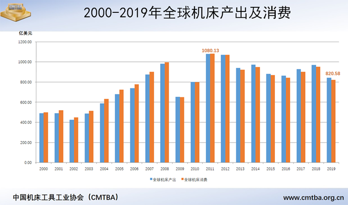下面,給大家分享幾張圖,分別是:2000-2019全球機(jī)床產(chǎn)出及消費(fèi)、1980-2019中國(guó)機(jī)床市場(chǎng)消費(fèi)及其全球占比、1980-2019中國(guó)機(jī)床生產(chǎn)及其全球占比。