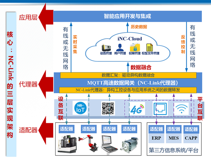 據(jù)了解,NC-Link協(xié)議已在武漢華中數(shù)控股份有限公司、廣州數(shù)控設(shè)備有限公司、科德數(shù)控股份有限公司、沈陽(yáng)高精數(shù)控股份有限公司、沈機(jī)(上海)智能系統(tǒng)研發(fā)設(shè)計(jì)有限公司等企業(yè)的數(shù)控產(chǎn)品實(shí)現(xiàn)了應(yīng)用。在嘉泰數(shù)控科技股份公司、四川普什寧江機(jī)床有限公司、武漢華工激光工程有限責(zé)任公司和武漢華大新型電機(jī)科技股份有限公司的生產(chǎn)線(xiàn)和智能工廠(chǎng)進(jìn)行了實(shí)驗(yàn)驗(yàn)證。同時(shí),在武漢、上海、廣州、西安等地建立了云數(shù)據(jù)中心,在數(shù)千家企業(yè)及高校進(jìn)行了部署實(shí)施,每天匯聚并處理上億條數(shù)據(jù),采集數(shù)控裝備中上千個(gè)點(diǎn)位信息,涵蓋設(shè)備狀態(tài)、報(bào)警信息、加工計(jì)件、采樣數(shù)據(jù)、調(diào)機(jī)數(shù)據(jù)等各種工況。