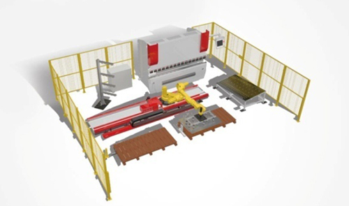 南通麥斯鐵的自動折彎機器人工作站,由折彎機與六關節(jié)工業(yè)機器人組成,結合機器人折彎軟件包MR-Bend以及折彎機器人離線編程軟件包MR-ROBERT的功能,將折彎機和機器人合二為一,實現拆垛、上料、折彎跟隨、碼垛全自動加工,提高生產效率。