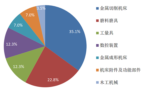 57家重點監測的上市公司中,金屬切削機床行業20家,占35.1%,居于首位;磨料磨具行業13家,占22.8%,位居第二;工量具和數控裝置行業均為7家,各占12.3%;金屬成形機床和機床附件及功能部件行業均為4家,各占7.0%;木工機械行業2家,占3.5%。具體行業分布情況如圖2所示。