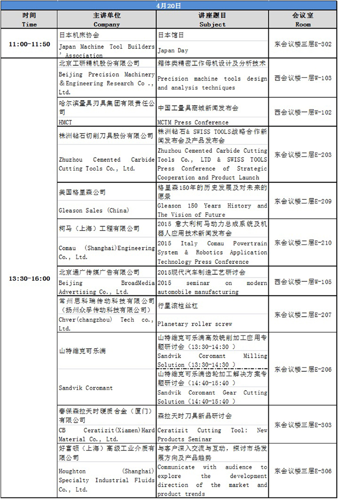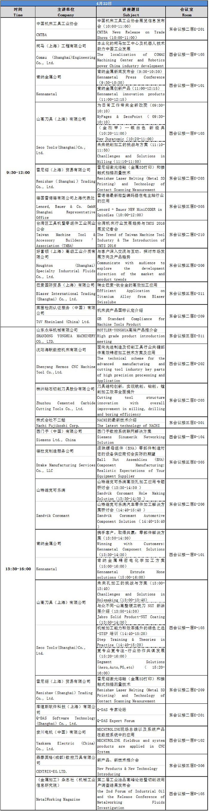 The 14th China International Machine Tool Show Technical Seminar Schedule