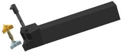 三菱公司的模塊化切槽刀具GY采取了獨特的夾緊方式,通過這樣的改進,使得GY切槽刀在加工時的高頻振顫、振擺均得以消除,與以往模塊型刀具相比,加工表面的粗糙度等級得以提高。另一方面,GY系列與一體型槽加工刀具可以實現幾乎同等的剛性。
