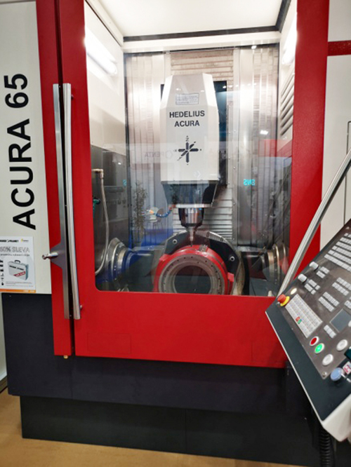 德魯斯展出的是ACURA 65高性能五軸加工中心,典型的搖籃式結構,由于Z軸方向距離達600㎜,可以最大限度地從多個側面對零件進行高精度加工。廣泛的附件允許機器適應許多加工任務。65把容量的刀庫能夠充分滿足加工需要,機床的前向夾緊,提高了人機的和諧和可接近性。