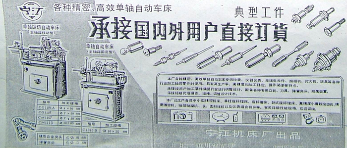 1979年6月25日,人民日報第四版左下方刊登了一條“特別”的廣告——“本廠各種精密、高效單軸自動車床專供鐘表、儀器儀表、無線電元件、照相機、打火機、玩具等各種行業加工軸類零件時使用……承接國內外用戶直接訂貨”。