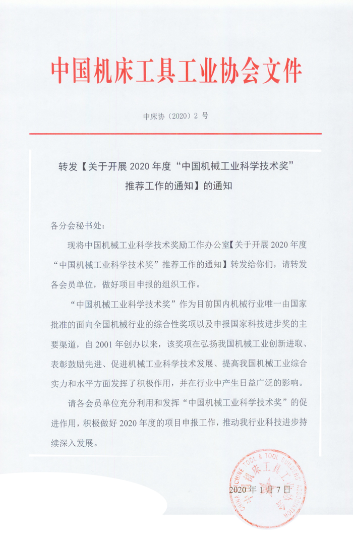 附件1:關于開展2020年度中國機械工業科學技術獎推薦工作的通知.pdf