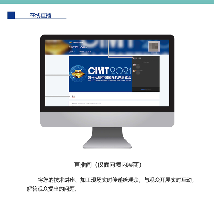 CIMT2021線上展會充分利用數字和信息技術,為展商、觀眾提供生動、精準的產品交互體驗,幫助展商提升產品宣傳效果和效率,讓公眾更好了解國內外機床產品和技術發展情況。