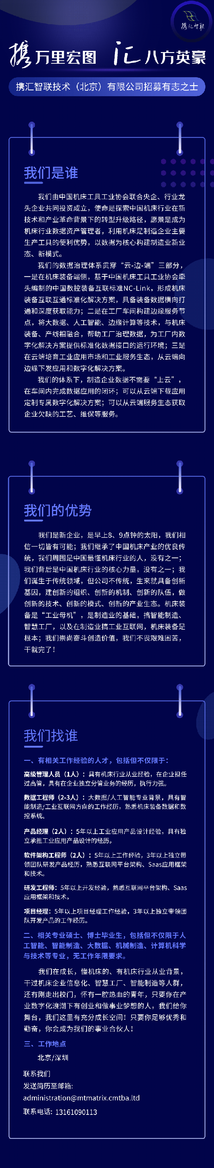 注:攜匯智聯(lián)技術(shù)(北京)有限公司由中國機(jī)床工具工業(yè)協(xié)會聯(lián)合央企、行業(yè)龍頭企業(yè)共同投資成立,使命是探索中國機(jī)床行業(yè)在新技術(shù)和產(chǎn)業(yè)革命背景下的轉(zhuǎn)型升級路徑,愿景是成為機(jī)床行業(yè)數(shù)據(jù)資產(chǎn)管理者,利用機(jī)床作為制造企業(yè)主要生產(chǎn)工具的優(yōu)勢,以數(shù)據(jù)為核心構(gòu)建制造業(yè)新業(yè)態(tài)、新模式。