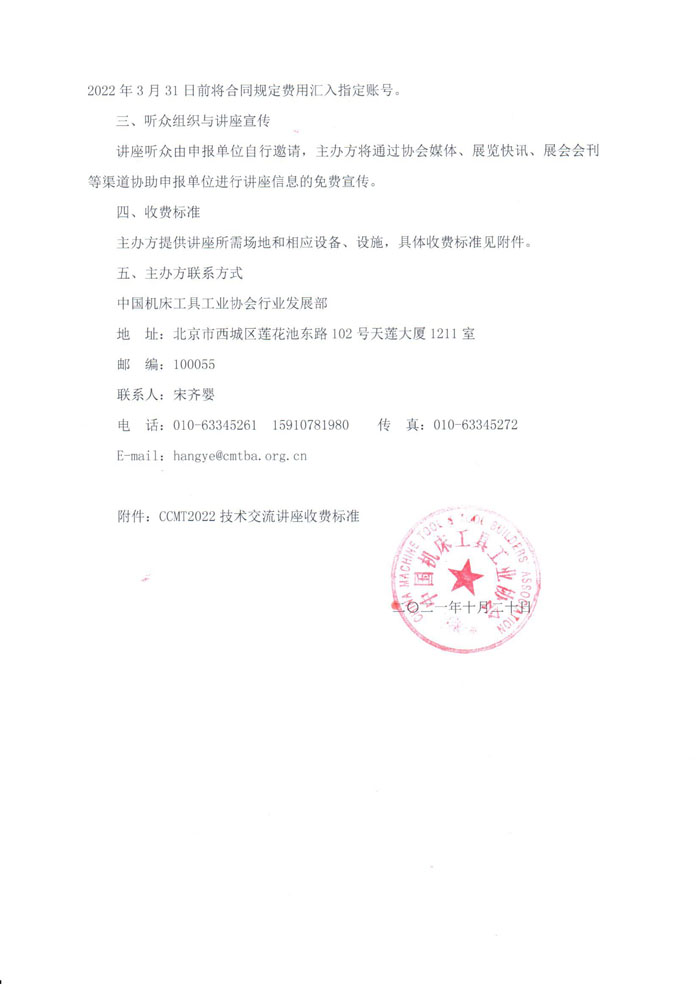 關(guān)于申報(bào)CCMT2022期間技術(shù)交流講座的通知