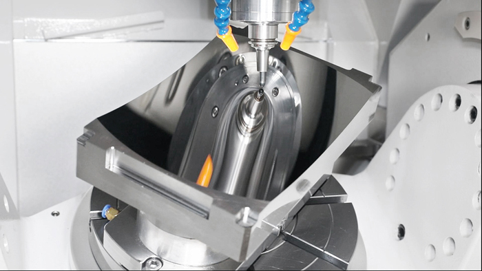 精雕五軸高速機進(jìn)行HUD鏡面模具零件CNC研拋加工